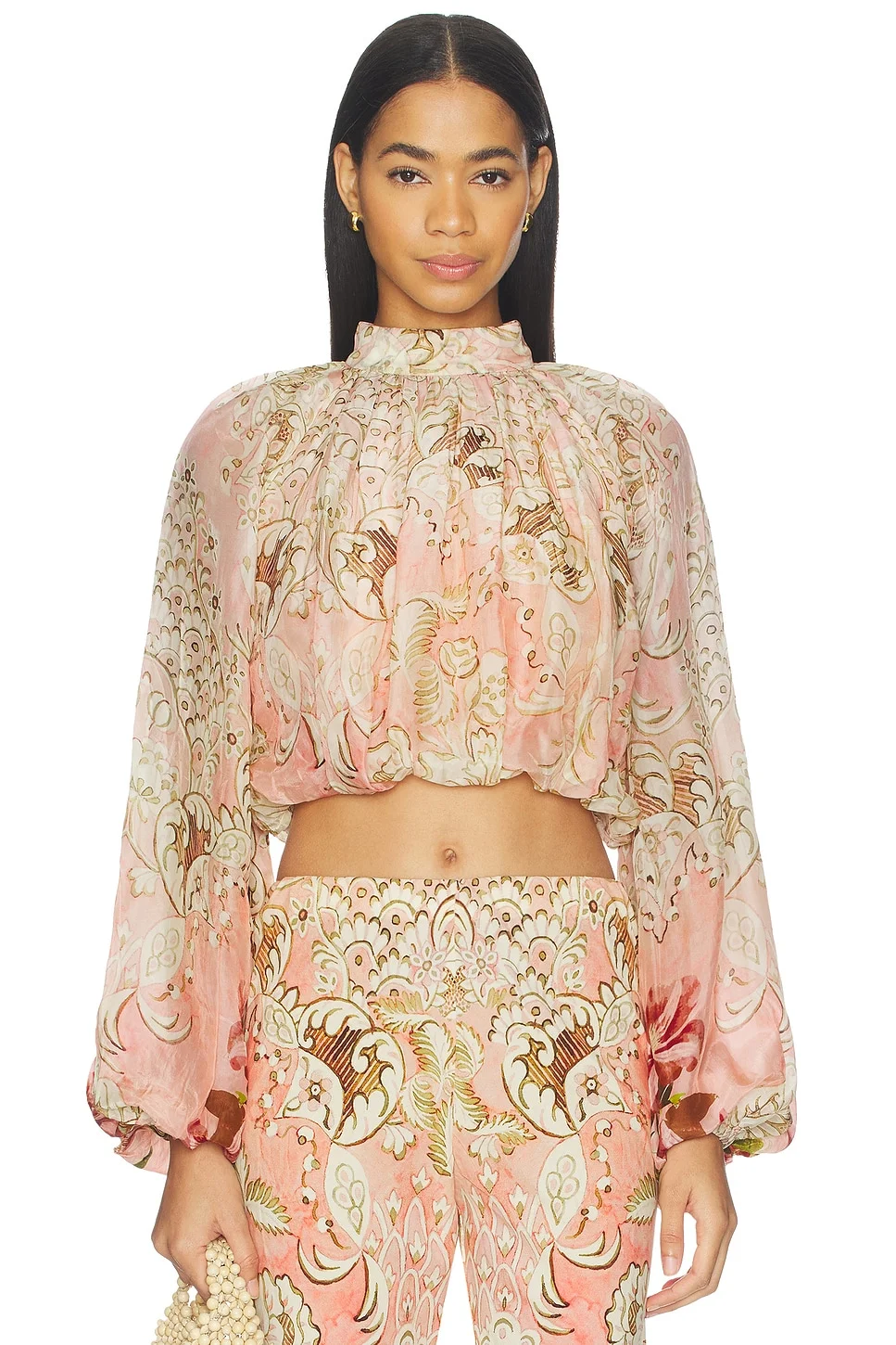 - Self & Lining: 100% viscose - Dry clean only - Back button loop closure - Mockneck design - Cropped fit - Midweight satin fabric - Item not sold as a set - Revolve Style No. BENE-WS189 - Manufacturer Style No. HN-ANAH-6189