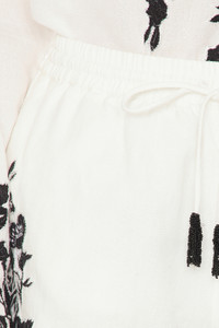 - Self: 55% linen 45% cotton Lining: 100% cotton - Dry clean only - Front drawstring tie closure - Elasticized waistband - Side seam pocket - Midweight linen fabric with embroidered floral design - Item not sold as a set - Shorts measure approx 13" in length - Revolve Style No. BENE-WF23 - Manufacturer Style No. HN-AAHI-6047