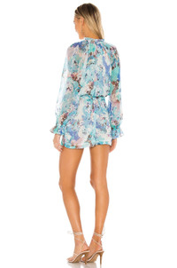 - Shell: 100% viscose Lining: 100% viscose - Made in India - Dry clean only - Partial front button closure - Elastic cuffs - Georgette fabric - Elasticized waist with detachable tie - Revolve Style No. BENE-WR5 - Manufacturer Style No. HN-TEIEN-973 B
