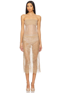 - Sequin-embellished textile - Imported - Spot clean recommended - Partially lined - Concealed back zipper with hook and eye closure - Attached hot short - Item not sold as a set - Skirt measures approx 31" in length - Revolve Style No. HSKI-WQ2 - Manufacturer Style No. 5575209