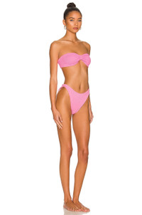 - 97% polyamide 3% elastane - Made in Morocco - MAchine wash cold - Unpadded - Pull-on styling - Knot detail at bust - Item sold as set - Moderate adjustable coverage on the top and bottom allows you to adjust the jeans to your needs - Offers light bust support - Revolve Style No. HUNG-WX82 - Manufacturer Style No. JEAN BIKINI