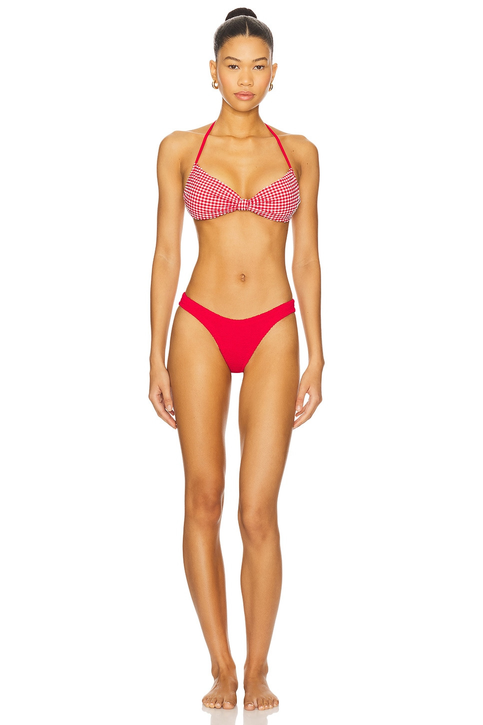 Kacey gingham seersucker halterneck bikini Red