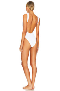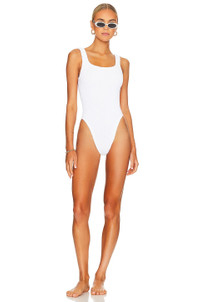 - 97% polyamide 3% elastane - Made in Morocco - Machine wash cold - Unpadded - Signature crinkle fabric - The Square Neck Swimsuit boasts wide straps, a low scoop back, and a cut that's high on the leg; it's universally flattering and effortlessly cool. - Revolve Style No. HUNG-WX113 - Manufacturer Style No. SQUARE NECK ONE PIECE