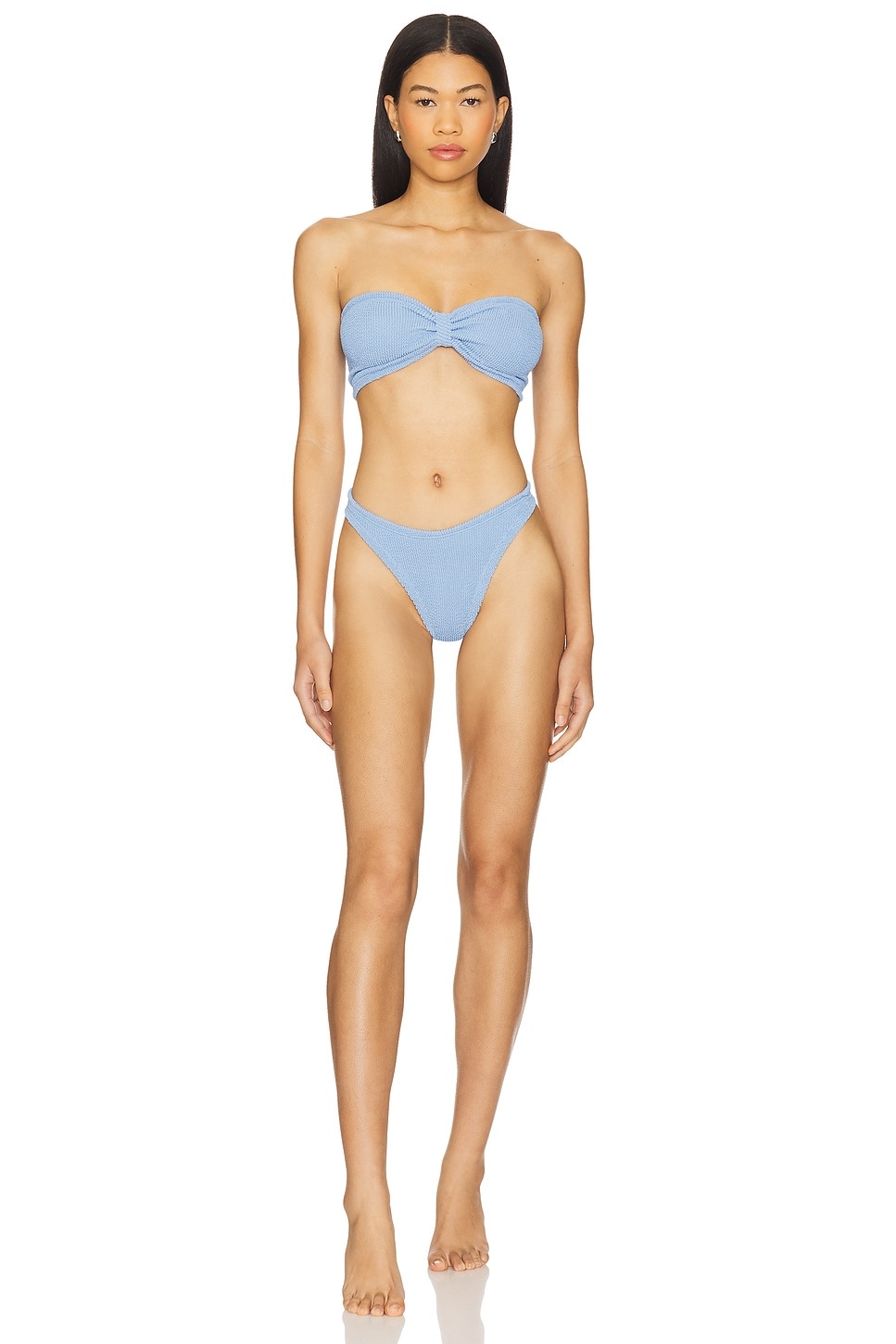 - 97% polyamide 3% elastane - Machine wash - Unpadded cups - Pull-on styling - Front knot accent - Midweight textured swimwear fabric - Sold as a set - Revolve Style No. HUNG-WX238 - Manufacturer Style No. TINA
