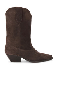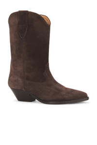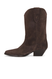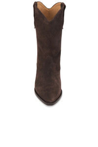 - Suede upper with leather sole - Pull-on styling - Leather footbed and lining - Dual side-pull tabs - Pointed toe with wooden block heel - Approx 50mm/ 2 inch heel Approx 205mm/ 8 inch shaft Shaft measures approx 14.13" in circumference - Revolve Style No. IMAR-WZ375 - Manufacturer Style No. 23PBO0003FA-A1A03S