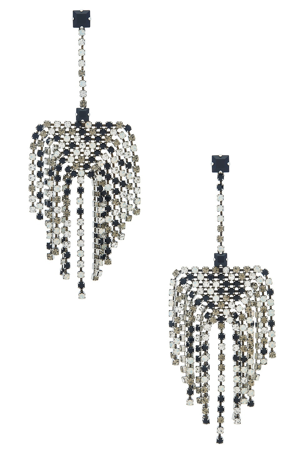 - Silver-tone metal earrings with clear and black crystals - Post-back closure - Measures approx 5" dangling - Revolve Style No. IMAR-WL128 - Manufacturer Style No. 25HBL0250FA-C4B04B