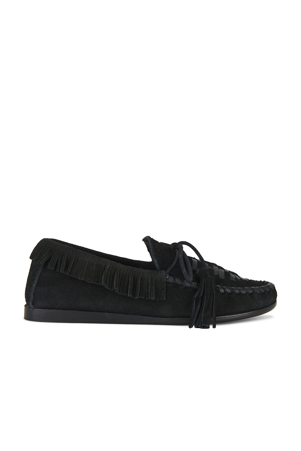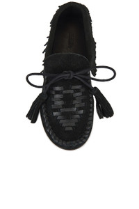 - Suede upper with leather trim and leather sole - Slip-on styling with front tie closure with tasseled ends - Fringed detailing - Tonal leather whipstitch trim at toe - Revolve Style No. IMAR-WZ371 - Manufacturer Style No. MC0019FC-C2A05S