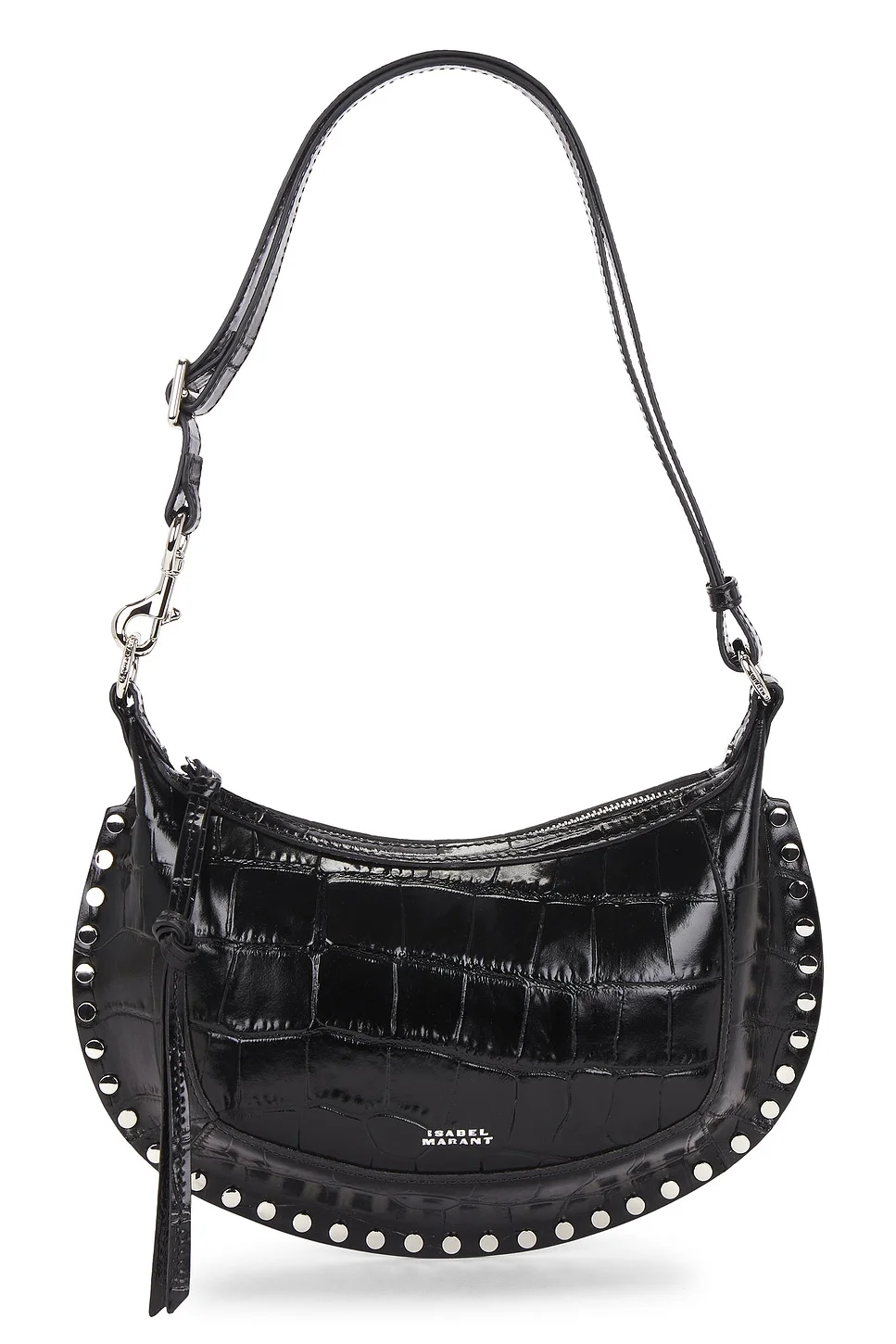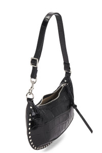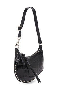 - Croc embossed patent leather exterior with textile lining - Top zipper closure - One main compartment - Interior card slot - Integrated and adjustable leather shoulder strap - Measures approx 12" W x 7" H x 2" D Shoulder strap with a 11" drop - Revolve Style No. IMAR-WY243 - Manufacturer Style No. PP0003FA-C4C17M