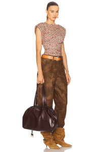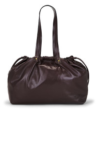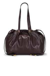 - Lamb leather exterior with twill lining - Top magnetic button closure with drawstring sides - One main compartment - Interior zipper pocket - Integrated shoulder straps - Measures approx 16" W x 11.5" H x 5.25" D Shoulder strap with a 11" drop - Revolve Style No. IMAR-WY237 - Manufacturer Style No. CS0004FA-C3C05M