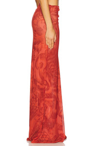 - 94% recycled polyester 6% elastane - Machine wash - Fully lined with mesh fabric - Side tie-up closure - Mesh fabric - Garment is made with a semi-sheer fabric, undergarments can show through - Item not sold as a set - Skirt measures approx 48" in length - Revolve Style No. JADF-WQ18 - Manufacturer Style No. SS25-CO-03-01