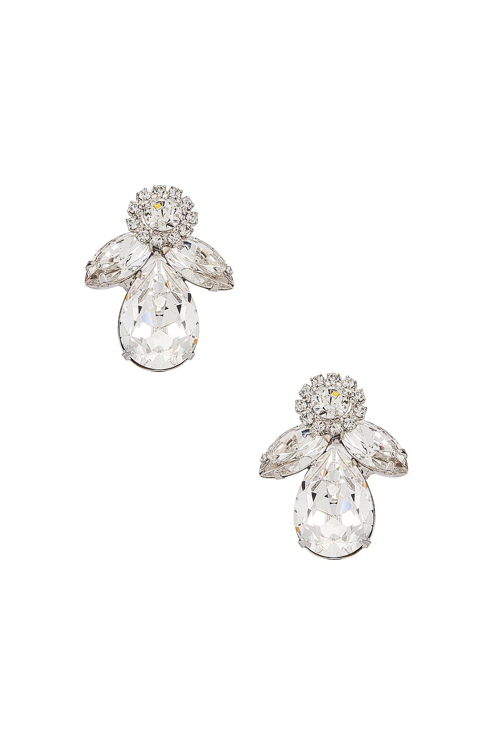 - Rhodium plated earrings with Swarovski crystals - Post back closure - Measures approx 1" W x 1.5" H - Made in USA - Revolve Style No. JEHR-WL145 - Manufacturer Style No. 50RA34