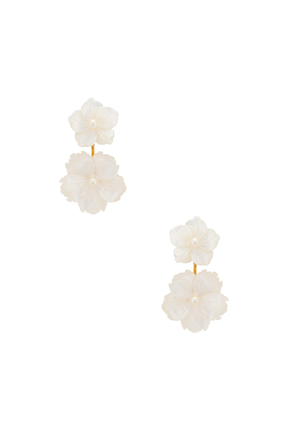 - Mother of pearl floral earrings with gold-tone hardware - Made in USA - Post-back closure - Measures approx 1.25" dangling - Revolve Style No. JEHR-WL250 - Manufacturer Style No. 76RB83-mother-of-pearl