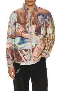 - 95% polyester 5% spandex - Dry clean only - Front button closure - Chest slip pocket - Button cuffs - Midweight satin fabric - Revolve Style No. KIDF-MS40 - Manufacturer Style No. AW25-LTP-01