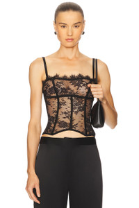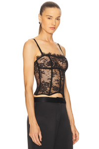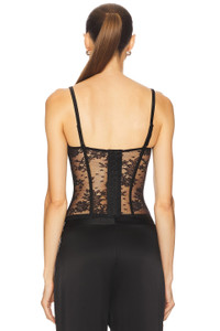 - 81% nylon 19% elastane - Dry clean only - Hidden back hook and eye closure - Adjustable shoulder straps - Boned bodice - Lightweight lace fabric - Garment is made with a semi-sheer fabric, undergarments can show through - Revolve Style No. KIDE-WS39 - Manufacturer Style No. P251CR037