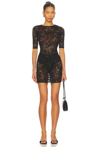 - 75% polyamide 25% elastane - Made in Turkey - Dry clean - Garment is intentionally sheer, undergarments will show through - Please note undergarment not included - Back zipper closure Elastic waistband - Lace textile - Item not sold as set - Skirt measuresapprox 15" in length - Revolve Style No. KIDE-WQ6 - Manufacturer Style No. F252SK077