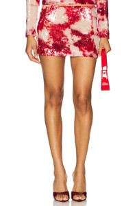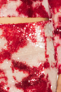 - 100% nylon - Machine wash cold - Fully lined - Hidden side seam zipper closure - Midweight sequined fabric - Item not sold as set - Skirt measures approx 12" in length - Revolve Style No. KIMR-WQ35 - Manufacturer Style No. KS2025SS20