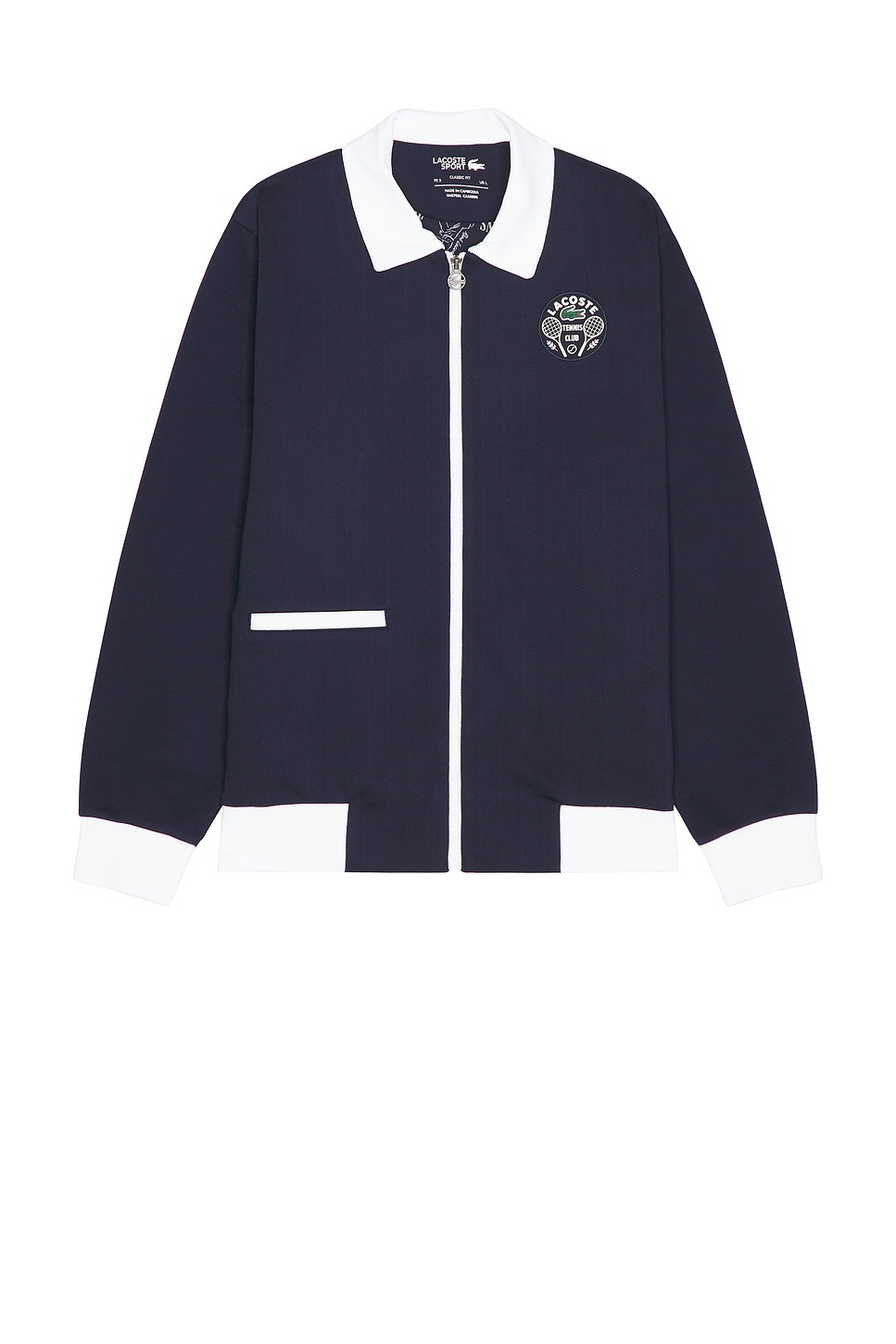 - Self: 50% polyester 45% cotton 5% elastane Lining: 100% cotton Contrast Fabric: 98% cotton 2% elastane - Machine wash - Front zip closure - Single pouch pocket - Patch logo - Midweight pique fabric - Revolve Style No. LACO-MO40 - Manufacturer Style No. SH8941
