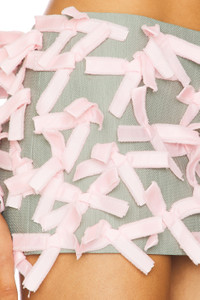 - Self: 100% cotton Lining: 100% viscose - Machine wash - Fully lined - Hidden back zip closure - Allover 3D bow accents - Midweight twill fabric - Skirt measures approx 9.5" in length - Revolve Style No. LBOK-WQ14 - Manufacturer Style No. LBSS25SKCOGP07