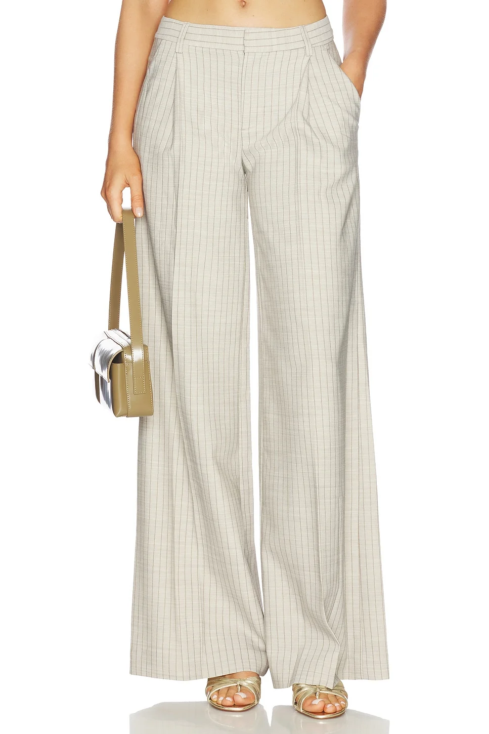 - Self: 43% polyester 34% viscose 21% wool 2% elastane Lining: 100% polyester - Dry clean only - Zip fly with hook and bar closure - Side seam and back faux welt pockets - Pleated design - Heavyweight twill fabric - Item not sold as a set.28" at the leg opening - Revolve Style No. LAGR-WP131 - Manufacturer Style No. 2855LXJ