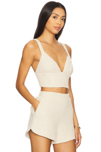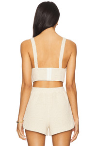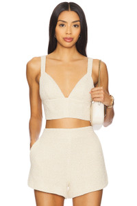 - Self: 58% cotton 32% polyester 10% other fibers Lining: 100% polyester - Dry clean only - Back hook and eye closure - Adjustable shoulder straps - Cropped styling - Midweight knit fabric - Item not sold as a set - Revolve Style No. LAGR-WS565 - Manufacturer Style No. 5780SFD