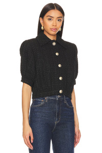 - Self: 55% cotton 45% polyester Lining: 100% polyester - Made in China - Dry clean only - Front button closure - Inelastic puff sleeves - Tweed fabric - Revolve Style No. LAGR-WO231 - Manufacturer Style No. 1687TRN