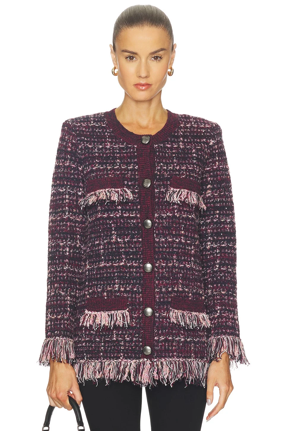 - 92% cotton 4% polyamide 2% acrylic 1% nylon 1% wool - Made in China - Dry clean only - Front button closure - Heavyweight tweed fabric - Padded shoulders - Front patch pockets.4 pocket styling - Revolve Style No. LAGR-WK155 - Manufacturer Style No. 80165LGO