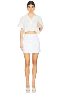 - 100% cotton - Made in USA - Machine wash cold - Unlined - Front button closure - Faux pockets - Skirt measures approx 15.5" in length - Revolve Style No. LAGR-WQ54 - Manufacturer Style No. 3429KDW