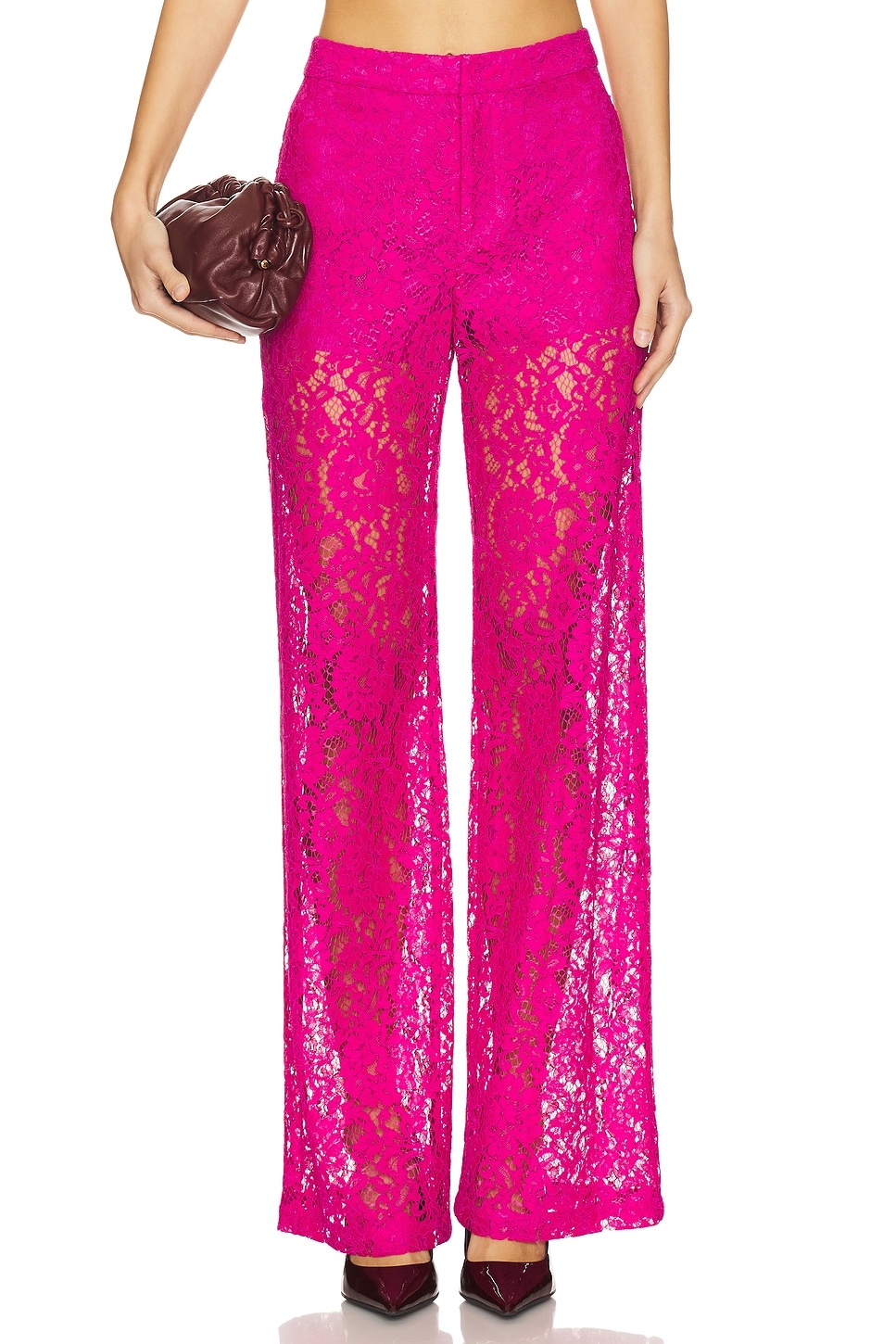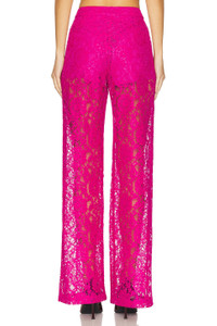 - Self: 75% nylon 25% cotton Lining: 100% polyester - Made in China - Dry clean only - Zip fly with hook and bar closure - Floral lace fabric - Item not sold as set - Garment is made with a semi-sheer fabric, undergarments can show through.22" at the knee and 22" at the leg opening - Revolve Style No. LAGR-WP108 - Manufacturer Style No. 2911ACK