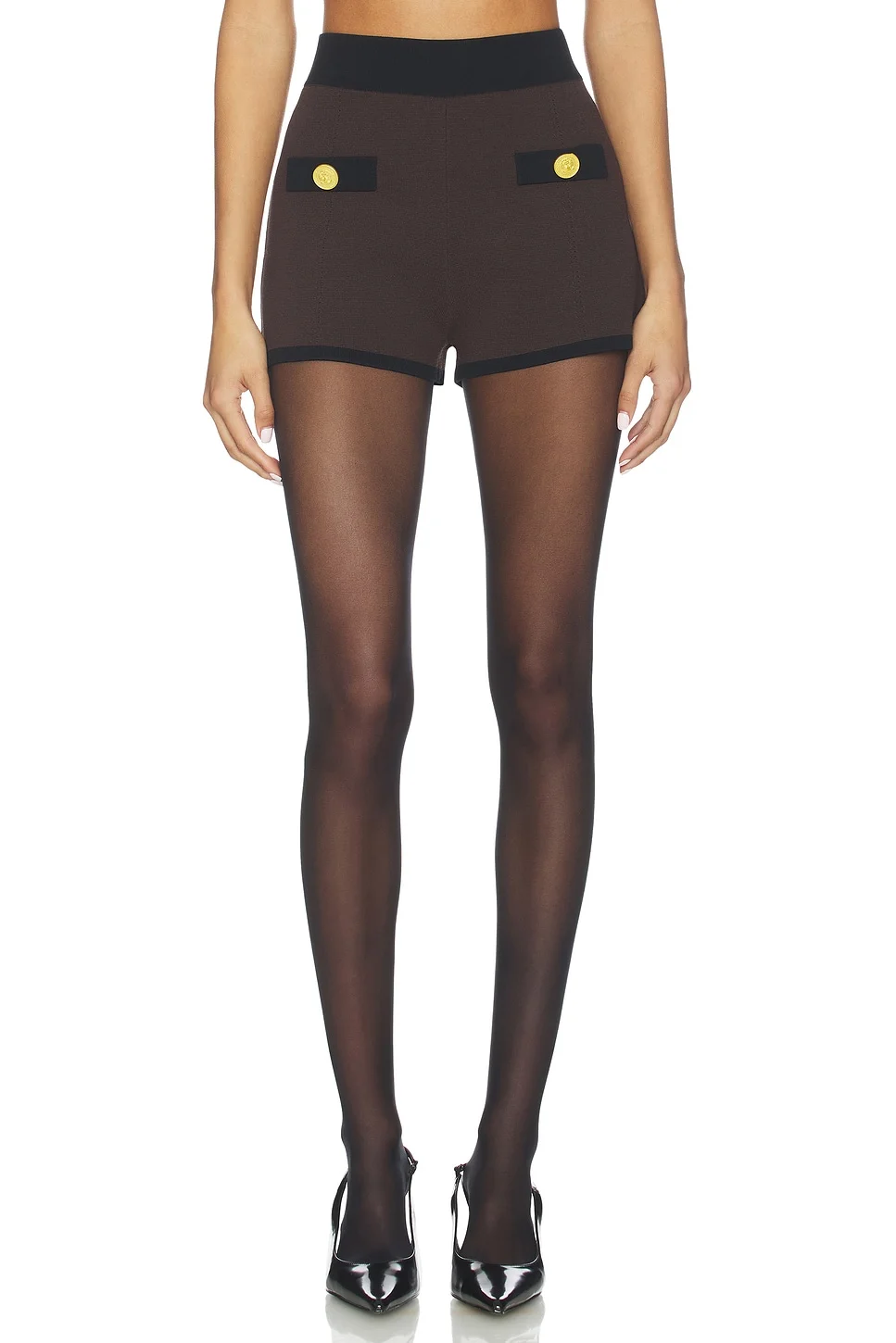 - 51% viscose 49% nylon - Made in China - Dry clean only - Pull-on styling - Stretchy waistband - Faux front pockets with gold logo medallion - Colorblock waistband and hem - Shorts measure approx 12" in length - Revolve Style No. LAGR-WF74 - Manufacturer Style No. 80141NXO2