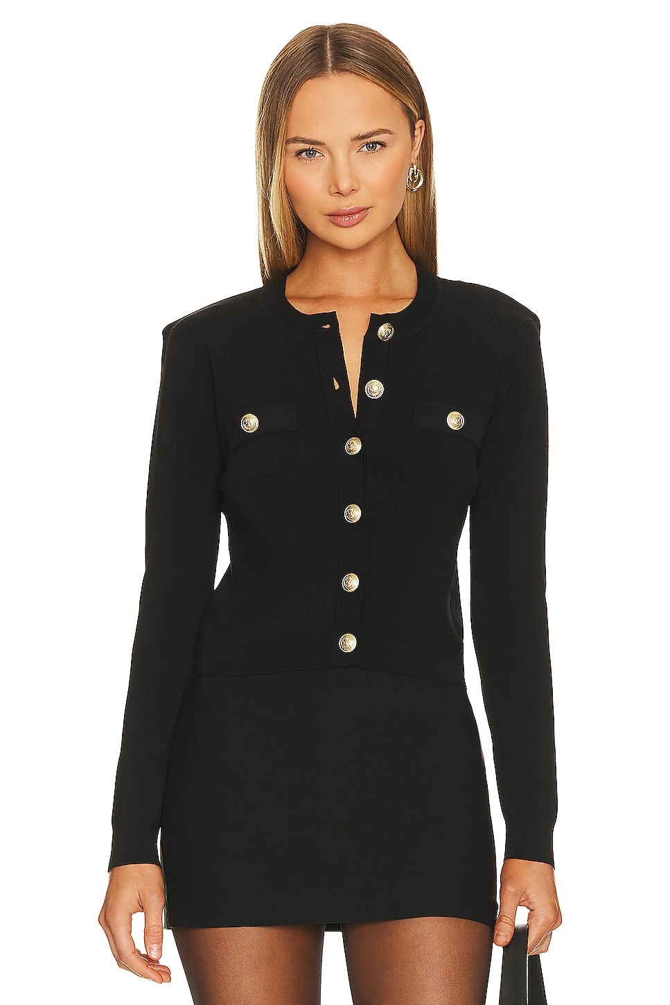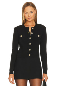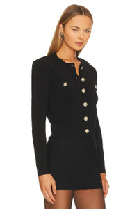 - 80% rayon 18% nylon 2% spandex - Made in China - Hand wash - Front gold-tone button closure - Padded shoulders - Breast slip pocket with button closure - Lightweight knit jersey fabric - Revolve Style No. LAGR-WK110 - Manufacturer Style No. 8928NXT2