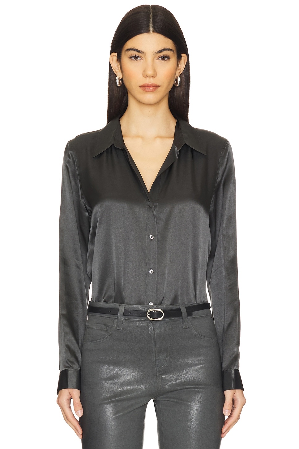 - 100% silk - Made in China - Dry clean only - Front button closure - Buttoned cuffs - Lightweight satin fabric - Item not sold as set - Revolve Style No. LAGR-WS528 - Manufacturer Style No. 40223CLZ