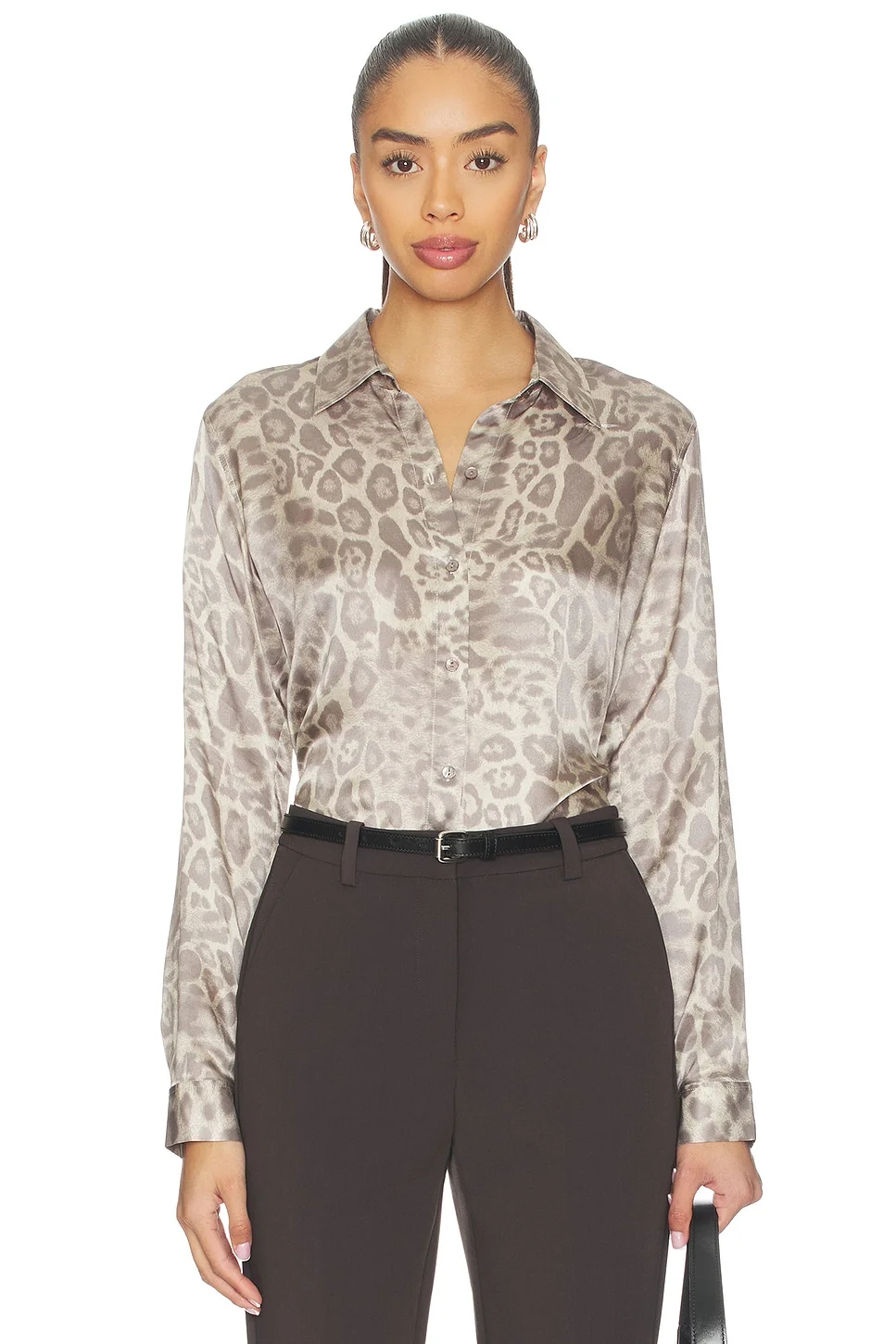 - 100% silk - Made in China - Dry clean only - Front button closure - Button fastener on cuffs - Lightweight satin fabric - Revolve Style No. LAGR-WS615 - Manufacturer Style No. 40223GRP