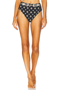 - Swimwear textile - Imported - Hand wash cold recommended - Pull-on styling with elastic waistband - Detachable waist belt with dual silver hardware buckle closures - High-waisted design with bikini back - Item not sold as set - Midweight swim fabric - Revolve Style No. LAGR-WX24 - Manufacturer Style No. LG5TG99