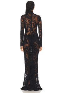 - Self: 83% viscose 17% nylon Lining: 73% nylon 27% elastane - Made in USA of imported materials - Dry clean only - Unlined - Back zip closure - Heavyweight jersey fabric with front cut-outs - Garment is intentionally sheer, undergarments will show through. - Revolve Style No. LOIN-WD29 - Manufacturer Style No. R2253145OKD