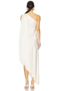 - 60% acetate 40% viscose - Dry clean only - Unlined - Hidden side zip closure - One shoulder styling - Draped fabric accent - Midweight satin fabric - Revolve Style No. LOIN-WD25 - Manufacturer Style No. R1253179OJA