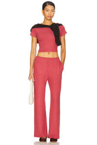 - 47% polyester 47% rayon 6% spandex - Hand wash cold - Cropped styling - Midweight jersey fabric - Item not sold as a set - Revolve Style No. LSET-WS32 - Manufacturer Style No. LT334A-LAUREN