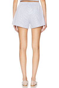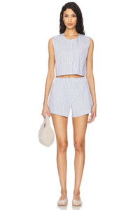 - 79% cotton 21% lyocell - Made in USA - Machine wash cold - Pull-on styling - Elastic waistband Faux button fly - Side seam pockets Back pocket - Shorts measure approx 13" in length - Revolve Style No. LSET-WF4 - Manufacturer Style No. LB137A
