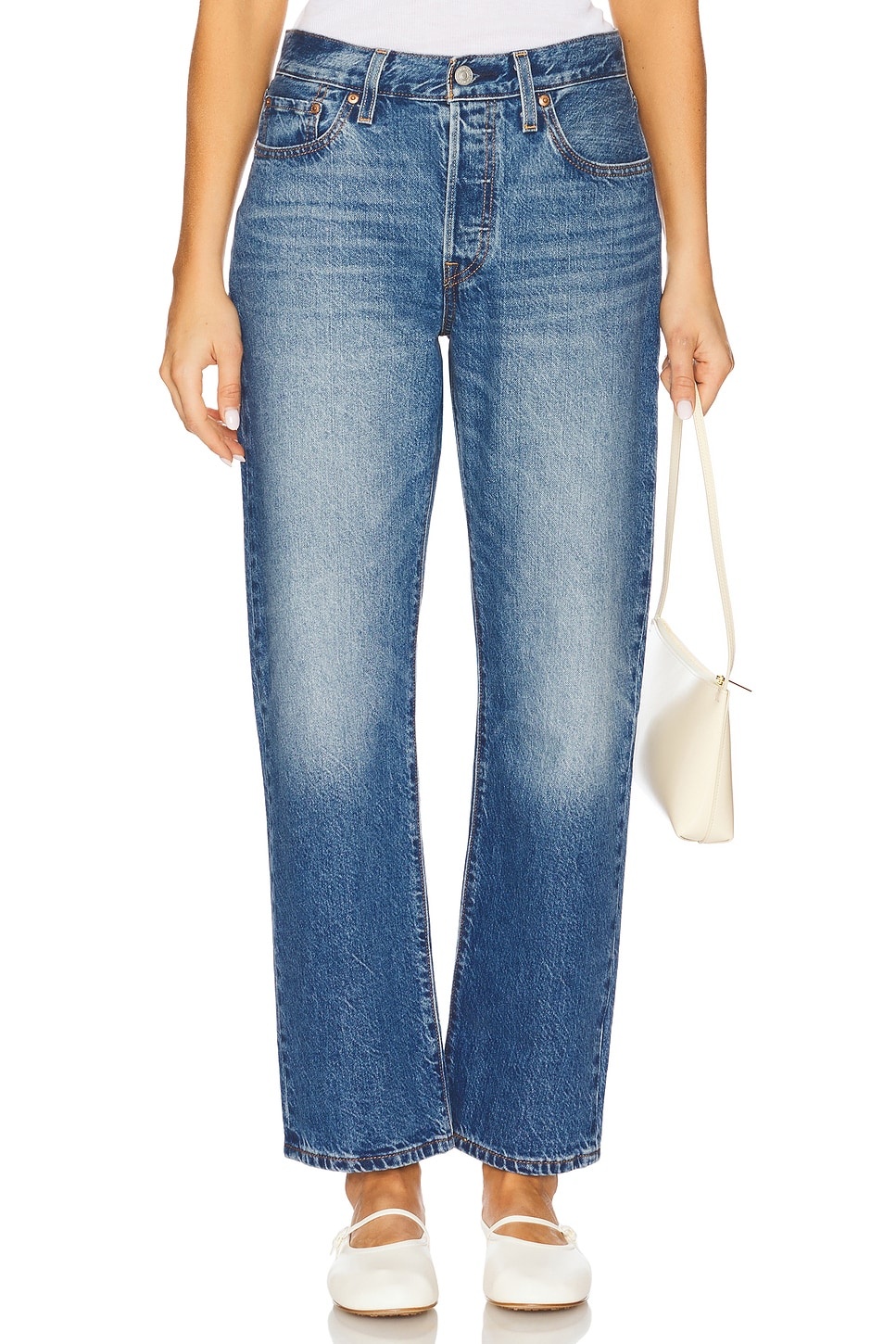 - 77% cotton 23% lyocell - Made in Cambodia - Machine wash cold - Button fly closure.5-pocket design - Midweight rigid denim fabric.17" at the knee narrows to 15" at the leg opening - Revolve Style No. LEIV-WJ438 - Manufacturer Style No. A8421-0003