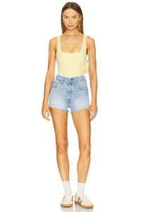 - 99% cotton 1% elastane - Made in Cambodia - Machine wash cold - Button fly.5-pocket design - Raw-cut hem - Midweight rigid denim fabric - Shorts measure approx 11" in length - Revolve Style No. LEIV-WF134 - Manufacturer Style No. 56327-0474