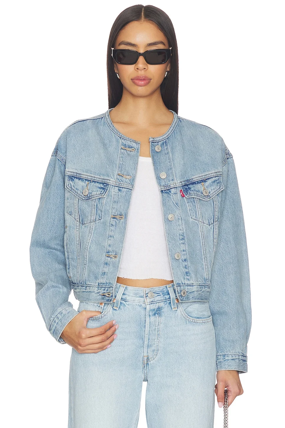 - 100% cotton - Machine wash - Front button closure - Breast button pockets - Button cuffs - Intentional fading - Cropped fit - Heavyweight denim fabric - Revolve Style No. LEIV-WO112 - Manufacturer Style No. 006EZ-0001