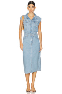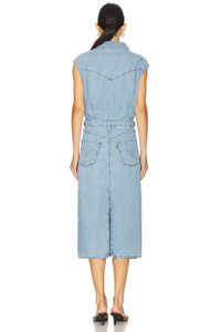 - 100% cotton - Machine wash cold - Unlined - Zip fly and front button closures.6-pocket design - Adjustable straps at sides with button closures - Midweight rigid denim fabric with cap sleeves and back vent - Revolve Style No. LEIV-WD7 - Manufacturer Style No. 001WF-0002