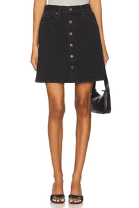 - 100% cotton - Machine wash - Unlined - Front button closure.5-pocket styling - Rigid denim fabric - Skirt measures approx 18" in length - Revolve Style No. LEIV-WQ41 - Manufacturer Style No. 003RO-0003