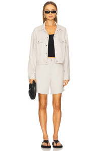 SHRUNKEN '90S LINEN BLEND LIGHTWEIGHT TRUCKER JACKET