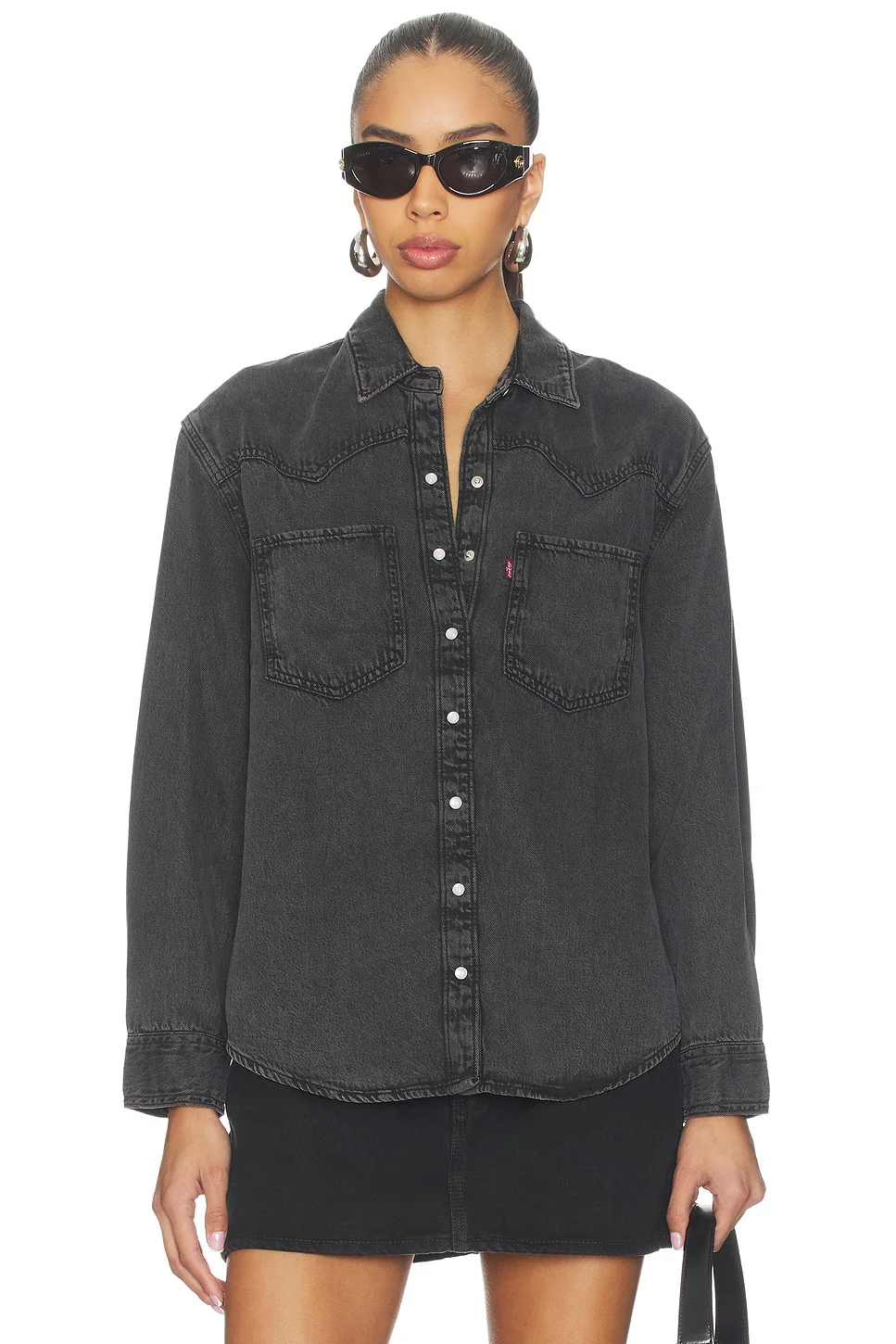 - 60% lyocell 40% cotton - Machine wash - Front snap button closure - Dual breast pockets - Buttoned cuffs - Lightweight denim fabric - Revolve Style No. LEIV-WS90 - Manufacturer Style No. A7244-0079