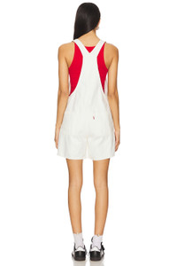 - 100% cotton - Machine wash cold - Buckle closures at suspenders and button closures at sides - Midweight rigid denim fabric with oversized front patch pocket and faux fly.2 side seam pockets and 2 back patch pockets - Adjustable suspenders - Revolve Style No. LEIV-WR18 - Manufacturer Style No. 001UY-0007
