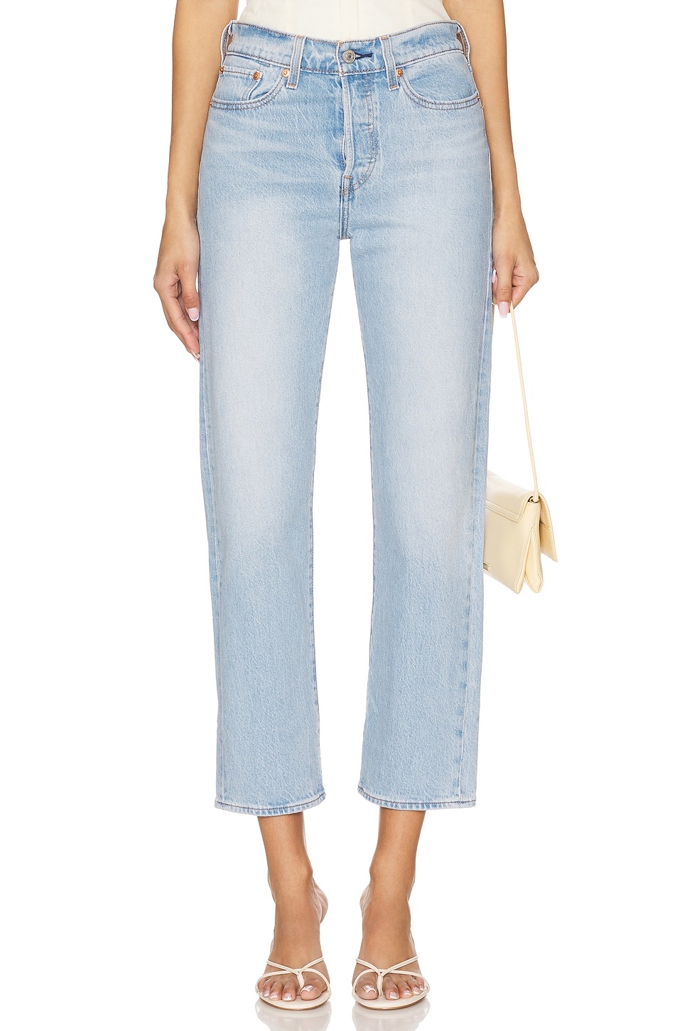 - 99% cotton 1% elastane - Made in Vietnam - Machine wash - Button fly closure.5-pocket styling - Intentional fading and light whiskering.18" at the knee narrows to 16" at the leg opening - Revolve Style No. LEIV-WJ420 - Manufacturer Style No. 34964-0196