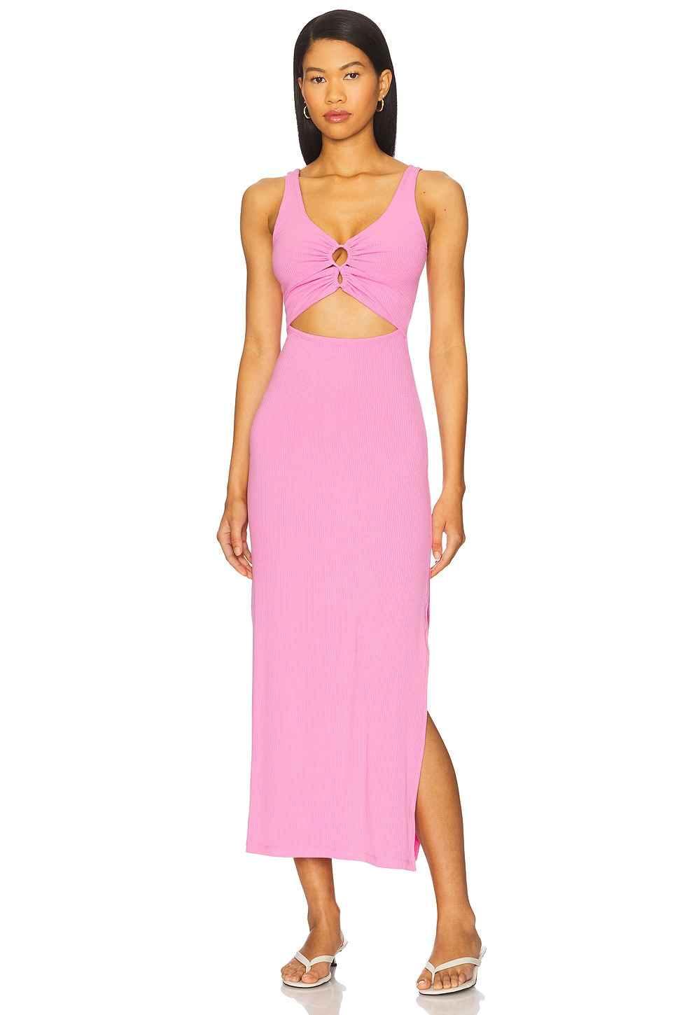 - 90% viscose 10% elastane - Hand wash cold - Partially lined at bust - Front cut-outs - Midweight ribbed jersey fabric with side hem slit - Revolve Style No. LSPA-WD509 - Manufacturer Style No. CMLDR24