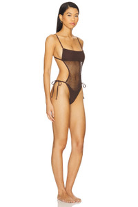 - 100% cotton - Hand wash cold - Back and side tie closures - Adjustable shoulder straps - Unpadded unwired cups - Open-knit crochet netting at front - Cheeky bikini back - Midweight swimwear fabric - Revolve Style No. LSPA-WX2078 - Manufacturer Style No. CMCAMC25