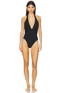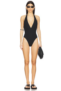 - 85% recycled polyamide 15% spandex - Made in China - Hand wash cold - Unpadded cups - Halterneck self-tie closure - Ribbed jersey swimwear fabric - Revolve Style No. LSPA-WX2067 - Manufacturer Style No. EOCOMC25
