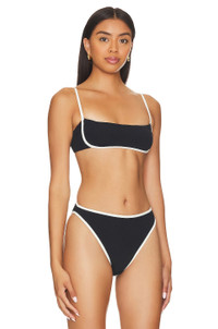 - 92% nylon 8% spandex - Made in China - Hand wash - Removable padded cups - Back tie closure - Adjustable shoulder straps - Item not sold as set - With adjustable shoulder straps, removable cups, and a flattering square neckline that flatters an array of bust sizes and provides medium support. - Revolve Style No. LSPA-WX1835 - Manufacturer Style No. RHHZT23